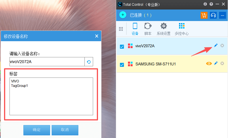 该示例演示如何通过 Total Control 脚本接口,根据设备标签(Tag)快速查找已连接的设备,并在设备上打开 App。